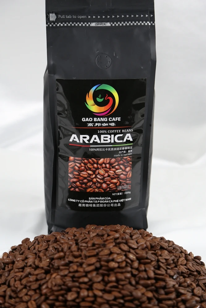 Gaobang 100% roasted arabica coffee beans which were created from GaoBang’s special recipe from the most developing prodution line in Vietnam.This roasting way produces shiny black beans with an oily surface and a pronounced bitterness. The darker the roast, the less acidity will be found in the coffee beverage. Each Arabica coffee bean is selected from the Central Highlands home of the coffee. Our company will supply the highly quaility products for customer.